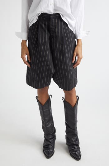 These extremely oversized pinstripe shorts crafted in Italy feature trouser detailing and are cut from a warm blend of virgin wool and linen.