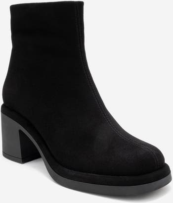 An elegantly balanced block-heel ankle boot combining plush suede texture with dependable comfort for day-to-night wear