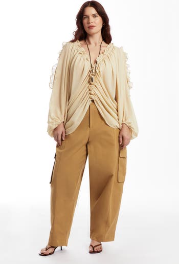 Fusing ease and edge, these barrel-leg cargo pants offer soft structure in motion. A gently tapered leg and cuffed hem balance utility-inspired pockets with an artful silhouette made for wandering.