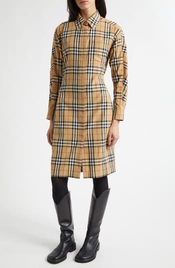The iconic checks make an appearance across this masterfully tailored shirtdress cut from crisp cotton poplin and featuring a clean, minimalist covered placket.