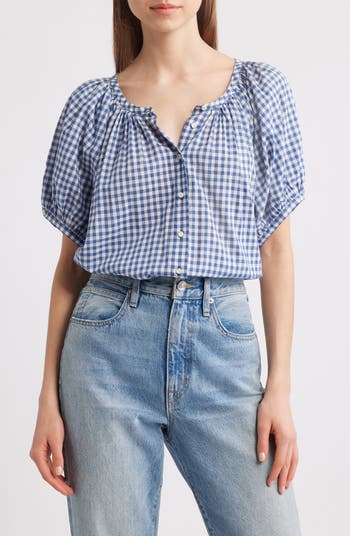 The cult-favorite Cali label's retro/romantic aesthetic pervades every stitch of this puff-sleeve top fashioned from a lightweight cotton-voile blend in a nostalgic gingham pattern. Mother-of-pearl buttons add a refined finishing touch.
