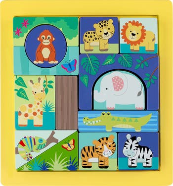 Jungle Animals Block Puzzle, Multicolor, 15 Piece, Kids Ages 1+