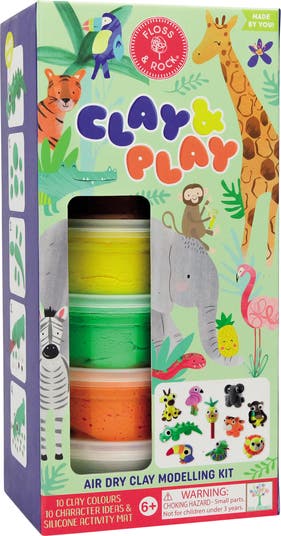 This fun jungle-themed crafting kit comes with six pots of 10 different air-dry clay colors, five double-sided instruction cards, a bright silicone mat and a wooden stylus tool. The clay is soft to work and air-dries in 24-72 hours once creations have been completed.