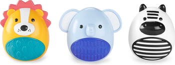 Keep your little one occupied with this set of three animal-themed shakers designed to fit perfectly in little hands. Each shaker features its own unique rattle sound and a textured tummy.