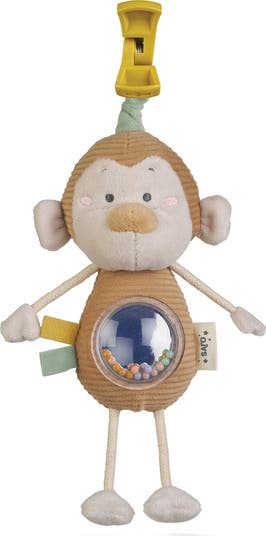 Keep your little one entertained while encouraging hand-eye coordination and sensory play with this plush animal rattle that easily clips onto strollers and car seats. A pull-and-retract motion that wiggles the toy back into place with a soft bell sound adds an extra interactive element that's sure to delight.