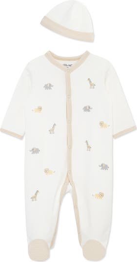 Keep your little safari buddy cute and comfy from head to toe in this cotton footie—complete with matching beanie—featuring playful jungle-friend embroidery for an adorable look you can only get here.
