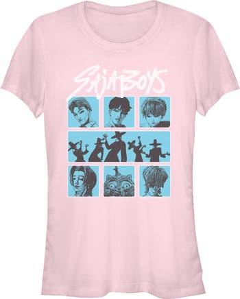 - Unleash your inner idol with this eye-catching juniors' t-shirt perfect for concerts, hangouts, or everyday slaying! Featuring a collage of all Saja Boys' members printed across the front.