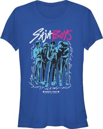 - Unleash your inner idol with this eye-catching juniors' t-shirt perfect for concerts, hangouts, or everyday slaying! Featuring Saja Boys' members printed across the front.