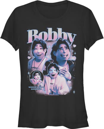 - Unleash your inner idol with this eye-catching juniors' t-shirt perfect for concerts, hangouts, or everyday slaying! Featuring a colorful collage of Bobby from K-pop Demon Hunters