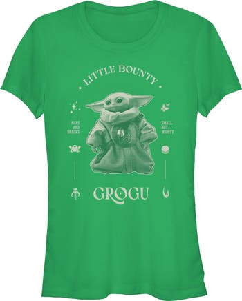 - Protect the galaxy with this juniors' t-shirt that will look perfect alongside the New Republic! Featuring Grogu and the text "Little Bounty Grogu" printed across the front.