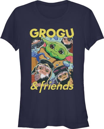 - Protect the galaxy with this juniors' t-shirt that will look perfect alongside the New Republic! Featuring a fun graphic of Grogu with a group of Anzellan Droidsmith and frogs jumping around them.