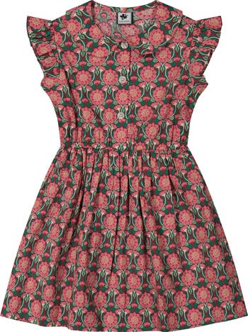 The Juniper dress is a must-have with its playful mini flutter sleeves and charming peter pan collar. Perfect for any occasion, this classic dress is made of 100% cotton and features a button front and flattering gathered waist. Â 100% cotton.