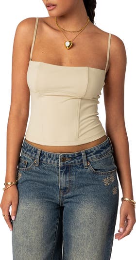 Date night is calling in this square-neck cami designed with boning for a sleek corseted silhouette.