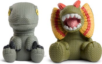 The robots present to you this preposterously adorable vinyl figure 2 Pack including Blue and Dilophosaurus as seen in Jurassic Park. Officially Licensed Approximately 5 inches tall and perfect for display or play Our friendly robots designed this figure to look like knit fabric at a glance, but it’s actually made of vinyl Signature vinyl tag on the figure, complete with barcode decal to resemble a sewn-in tag What is Handmade by Robots? Ambulatory biological units like yourselves require warmth and soft embraces. We robots know not of such things. Our best approximation is thus enclosed the appearance of interwoven organic fibers into recognizable characters from your pop culture, though made of solidified polymers. Our research indicates they would be given and received as gestures of friendship and love. May your acquaintances find value in such meaningless activities.