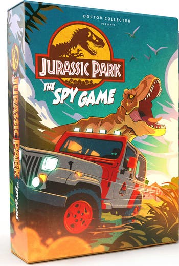 DOCTOR COLLECTOR: JURASSIC PARK: THE SPY GAME - STRATEGY GAME FOR 5-10 PLAYERS. Jurassic Park: The Spy Game is a hidden role game for 5 to 10 players suitable for ages 10 and above. Players and their team will try to accomplish their mission to beat the rival team. Discover who deserves your trust in a battle of deceit, betrayal, and strategy. Will you embrace the daring life of a spy, ready to steal valuable dinosaur embryos, or will you align with the dedicated Jurassic Park staff, determined to thwart any catastrophic outcomes? The excitement and suspense build as the game progresses! A whole new way to immerse yourself in the world of Jurassic Park. Features stunning artwork and components highlighting some of Jurassic Park's most popular dinosaurs, characters, scenes, and props - including the iconic Barbasol can! The game typically lasts between 20 to 30 minutes, ensuring a quick and engaging experience. As you immerse yourself in the world of Jurassic Park: The Spy Game, you'll need to rely on your team, your instincts, and your cunning to achieve your ultimate goal. Are you up for the challenge?