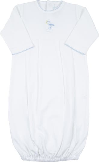 Crafted from 100% premium Pima cotton, this baby gown combines exceptional softness with heirloom-quality detailing. Featuring a delicate hand-embroidered stork and elegant contrast trim, it's a timeless piece designed for your little one's earliest days. Perfect for newborn cuddles, first photos, or bringing baby home, a beautiful gown made to be treasured.