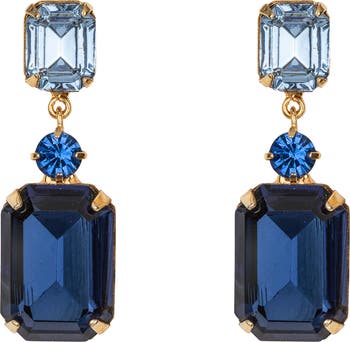 Dial up the drama and sparkle of your ensemble with these mixed-cut crystal drop earrings in mesmerizing hues of blue.