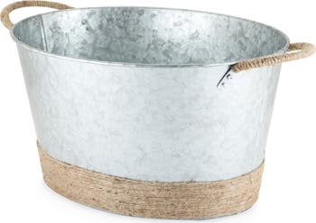 Jute Rope Wrapped Galvanized Metal Beverage Tub