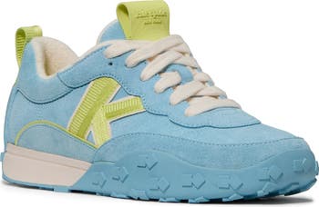 The rubbery sole textured with stacked-block treads wraps the toe and heel of this cute commute-friendly sneaker marked with a signature "k" at the sidewall.