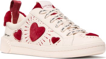 Fuzzy faux-fur heart cutouts make a lovely statement on a lace-up sneaker that's sure to be an everyday favorite.