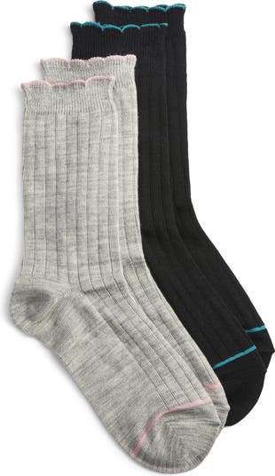 Assorted 2-Pack Scalloped Rib Crew Socks