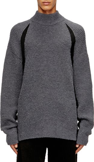 Inky contrast panels along the sides create a raglan effect in this luxuriously soft sweater made from a rich alpaca blend.