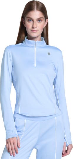 The K-Swiss Edge Women's Tennis Quarter Zip is a polished court-side essential that balances sporty performance with understated style. Crafted from lightweight stretch fabric, it offers moisture-wicking comfort and mesh ventilation where you need it most. The quarter-zip neckline adds customizable coverage and a sleek silhouette that transitions effortlessly from warm-ups to post-match cool-downs. With the classic K-Swiss shield subtly placed near the collar, it's both timeless and tech-savvy for players who want to look sharp while staying focused.