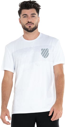 The K-Swiss Luxe Tech Crew Men's Tennis Shirt is designed for players seeking a blend of style and high-performance features. This shirt is crafted from advanced technical fabrics that offer moisture-wicking properties, ensuring you stay dry and comfortable during intense matches. The crew neck design provides a classic and comfortable fit, while the lightweight and breathable material allows for optimal airflow. Whether you're on the court or off, this shirt delivers both functionality and a sleek aesthetic.