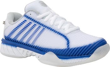 Elevate your game with the K-Swiss x Lucky In Love Hypercourt Express 2 Women's Tennis Shoes, a stylish collaboration that brings fashion to the forefront of functionality. These shoes feature a lightweight, breathable mesh upper for supreme comfort and ventilation, keeping your feet cool during intense matches. The bold design, courtesy of Lucky In Love, incorporates vibrant colors and patterns that stand out on the court, making a statement with every step. Engineered with K-Swiss's signature Aösta 7.0 high-density rubber outsole, these shoes offer unmatched durability and traction on all court surfaces. Additionally, the Surgelite midsole technology provides excellent cushioning and responsiveness, allowing for explosive movements and agility.