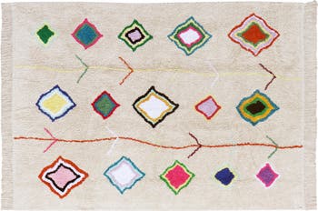 Mismatched diamonds and curvy lines bring color and any-room fun to a rug made of high-pile cotton that stays soft and washes easily in your machine.