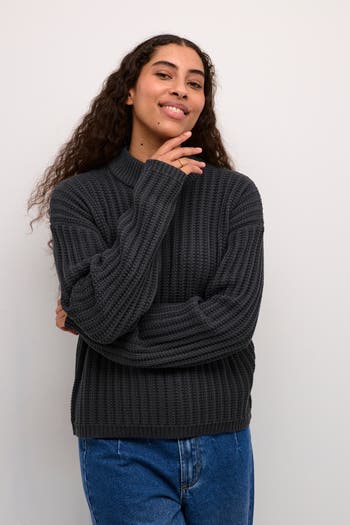The KAbess pullover is a casual and simple knit style, that you can wear with anything. It has a wide crew neck, and it has a casual fit with drop shoulders. The sleeves are long and loose, and they come down to the finger tips. The pullover is made in a textured knit and has rib edges.