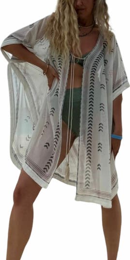 A gentle fabric cover-up for the beach or pool side. Can be worn over an outfit. Not too long or too short.
