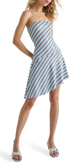 Kagari Mixed Stripe Straplessip Asymmetric Dress