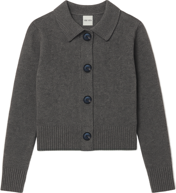 A modern take on a classic silhouette. The Kaia Cashmere Cardigan is crafted from luxuriously soft, ethically sourced cashmere and features a button-up front with oversized buttons for a touch of vintage charm. The collar adds a refined finish, while ribbed detailing along the cuffs and hem offers subtle texture and shape. Designed for a relaxed fit, it layers effortlessly over basics or stands alone as a statement piece. Elevated yet easy—an essential for refined, everyday dressing.