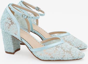 Classic and refined crochet lace almond toe wedding block heel