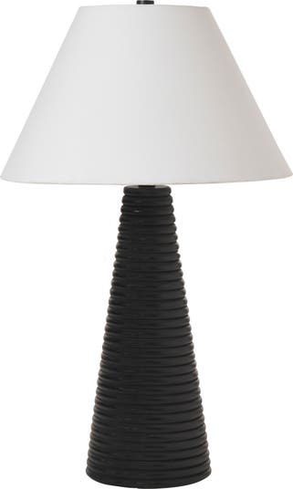 Perfect for contemporary or transitional spaces, this table lamp pairs a black-wash wooden body with an off-white linen shade for striking contrast.