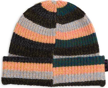 This vibrant beanie knit from repurposed yarns showcases a one-of-a-kind striped pattern spun from Waste Yarn Project's unique color wheel.