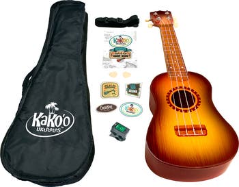 Hailed for being inexpensive and easy to learn, KaKo'o Ukuleles™ are perfect for children with musical interests or great for adults who want to learn something new. With fewer strings to manage and less tension, ukuleles are easier for beginners to pick up. Play for hours with fatigue with this convenient and small sized instrument. KaKo'o Ukuleles™ are designed for your little ones in mind to help them learn to pluck, strum, and play along to all their favorite songs. Our award-winning ukuleles come with everything you need to make learning to play fun and easy. The high-quality sound the premium nylon strings make will bring joy and delight to your ears and your ukulele will never go out of tune with the portable tuner. Each ukulele comes with a carrying case, 2 picks, a step-by-step instruction book with songs included, a ukulele strap, digital tuner, and a 4-pack sticker set to deck out your instrument and really make it your own. From beginners to masters, all are welcome to make music with KaKo'o™ Ukuleles.