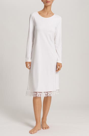 Dainty flowers embellish the tulle trim of this nightgown cut for dreamy comfort from fine, subtly lustrous mercerized cotton.