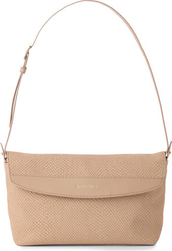A slouchy and oversized silhouette bring distinct elements to a leather clutch featuring a spacious interior and optional shoulder strap for convenient hands-free wear.
