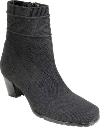 Everyday comfort and practicality is the name of the game with this block-heel bootie fashioned from water-resistant knit fabric that adapts to the contours of your foot.