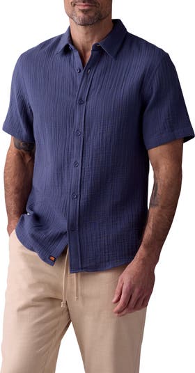 Cut from a fine, bubble-textured cotton gauze that takes on the season's warmest days in cool, comfort, this short-sleeve shirt is an easy way to look as good as you feel no matter what's in the forecast.