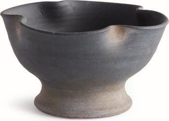 This footed bowl is hand thrown and formed by an artisans touch. But the real story is in the glaze. The dynamic texture is referred to as a 'cold finish', when the piece is not glazed a second time, creating a distinctive hand rubbed, matte finish. Simply stunning.