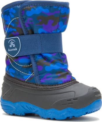 Fuzzy, faux-fur lining feels great on little feet and wicks away moisture in this waterproof snow boot with a temperature rating of -10 degrees Fahrenheit. An easy hook-and-loop strap and a gusset-expandable, flexible shaft help them to proudly master putting them on and taking them off all by themselves.