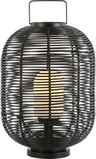 Kandella 26.7" Outdoor Woven Oval Asian LED Lantern, Black