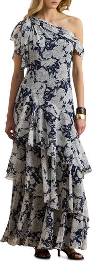 One bare shoulder and layers of airy ruffles make this tiered maxi dress the definition of easy elegance. The textured fabric floats with you as you make your grand entrance at any event.