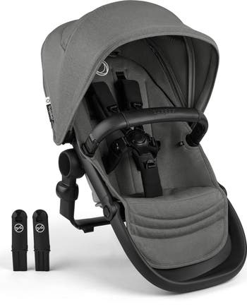 What it does: The reversible seat can face the parent or face the world. An adjustable footrest offers three positions for optimal comfort. A large extendable sun canopy with UPF 50+ protection with a peekaboo panel can adjust up the seat frame to accommodate a growing child. Includes lower seat adapters to install seat in the lower position. The sibling seat can be placed in the upper or lower position on the Bugaboo Kangaroo stroller frame.