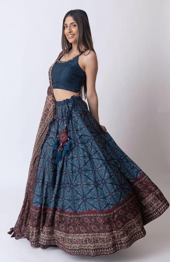 This opulent Kanika Bandhani-Printed Lehenga Choli Set is the epitome of elegance and style, featuring a stunning 8 to 10 meter flare lehenga adorned with an intricate ajrakh print border. The set includes a beautifully hand-worked blouse and an ajrakh printed georgette dupatta, combining traditional craftsmanship with modern flair. The soft silk fabric enhances your silhouette with graceful movement, making the Kanika Bandhani-Printed Lehenga Choli set an unforgettable choice for remarkable occasions.