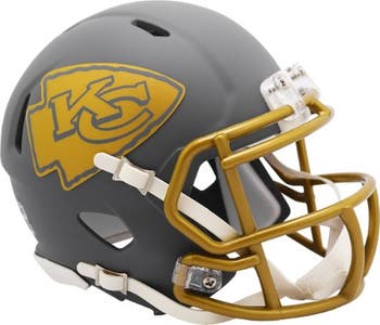 The Slate Collection takes a stylish, distinctive approach to NFL and College helmet design. Each helmet features a flat gray shell, gold or silver facemask and flat-finish gold or silver treatments of the primary helmet decal. Made by Riddell. NOT for wearing!