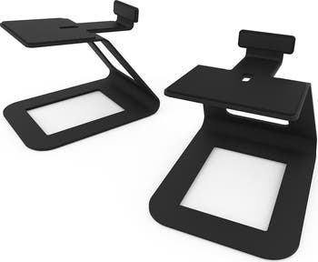 Take your sound setup further with the SE6 Elevated Speaker Stand, designed to lift large desktop or bookshelf speakers 6.9 inches for precise ear-level alignment and accurate on-axis performance. The angled, cantilevered steel platform minimizes surface reflections while absorbing cabinet resonance for cleaner, more detailed audio. Dense 2.5 mm silicone padding adds vibration control and a high-grip surface to keep speakers steady, while included mounting hardware lets you secure compatible models for added safety and stability. Finished in durable paint, each stand supports up to 22 pounds, frees valuable desk space beneath, and delivers a refined, minimalist look in black or white. Sold as a pair.